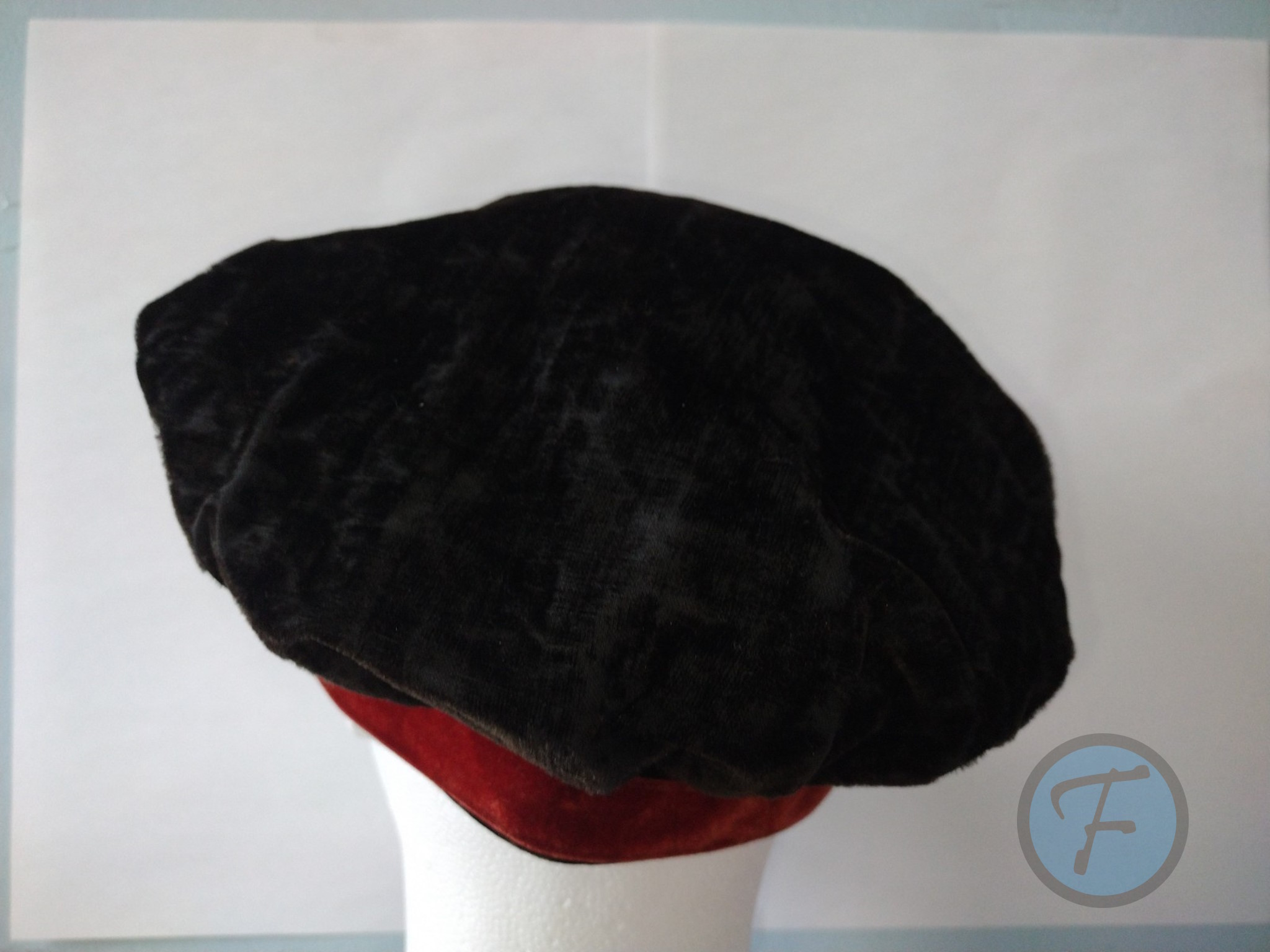 Le vendeur annonçait une date de "fin XIXè, début XXè". Cela est très cohérent puisque cette faluche n'a aucun insigne sur elle, les insignes étant apparus pendant les années 1920. Après inspéction plus attentive, il n'y a réellement aucune trace non plus d'insigne retiré ni sur le velours, ni sur le circulaire. La datation aurait pu être confirmée par la broderie d'un écusson de ville sur le velours, mais cette coutume n'était pas systématique, et l'étudiant, pour des raisons financières par exemple, a très bien pu choisir de ne pas le faire.