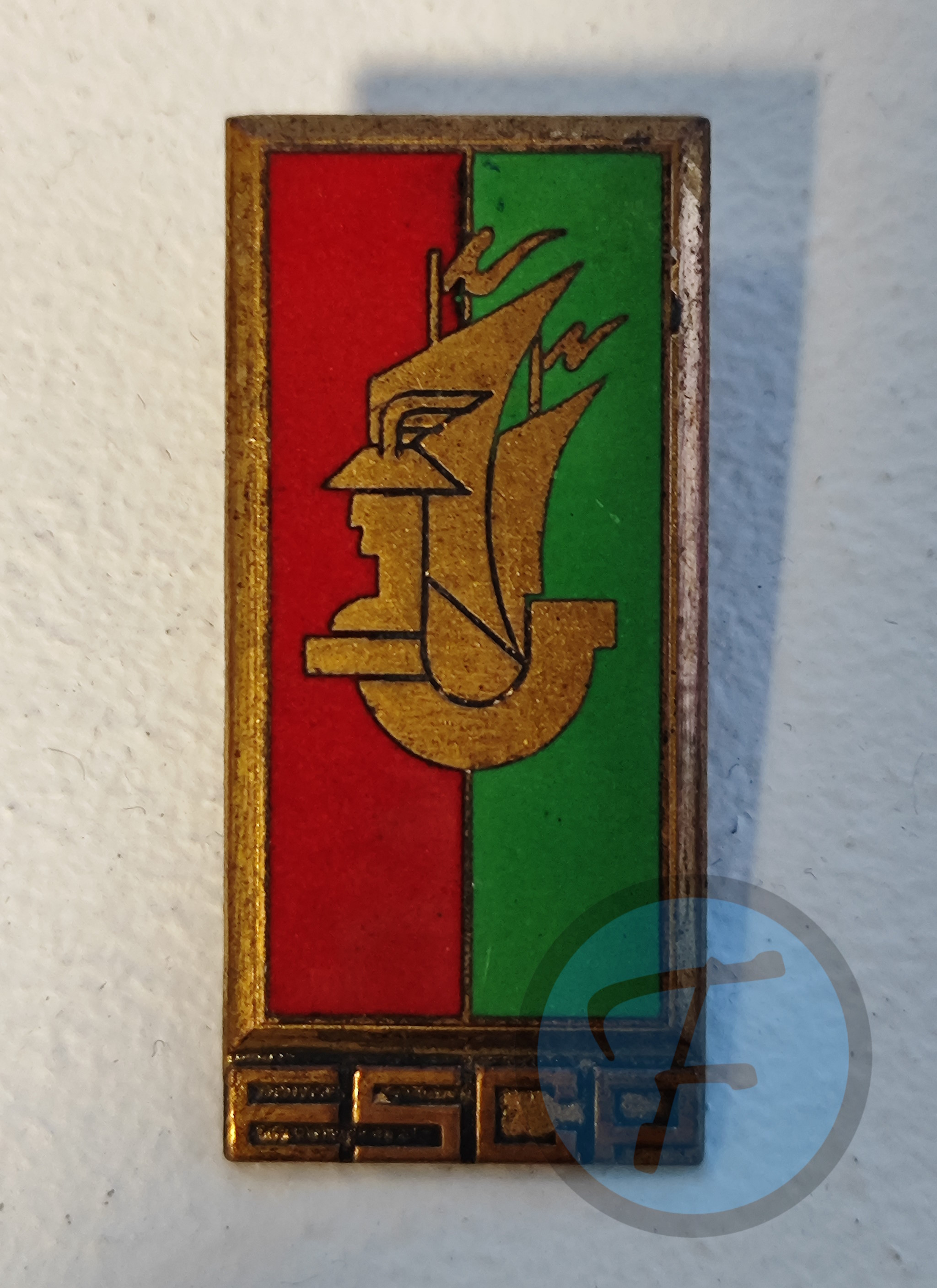 Les étudiants des écoles de commerce arborent le rouge et le vert depuis au moins les années 1960, mais cette association de deux couleurs est encore plus ancienne comme en témoigne cet insigne de l'école de commerce de Toulouse du début des années 1950, trouvé sur un Khalot de Hervé Giraud pour Estudiantinerie en 1954 :