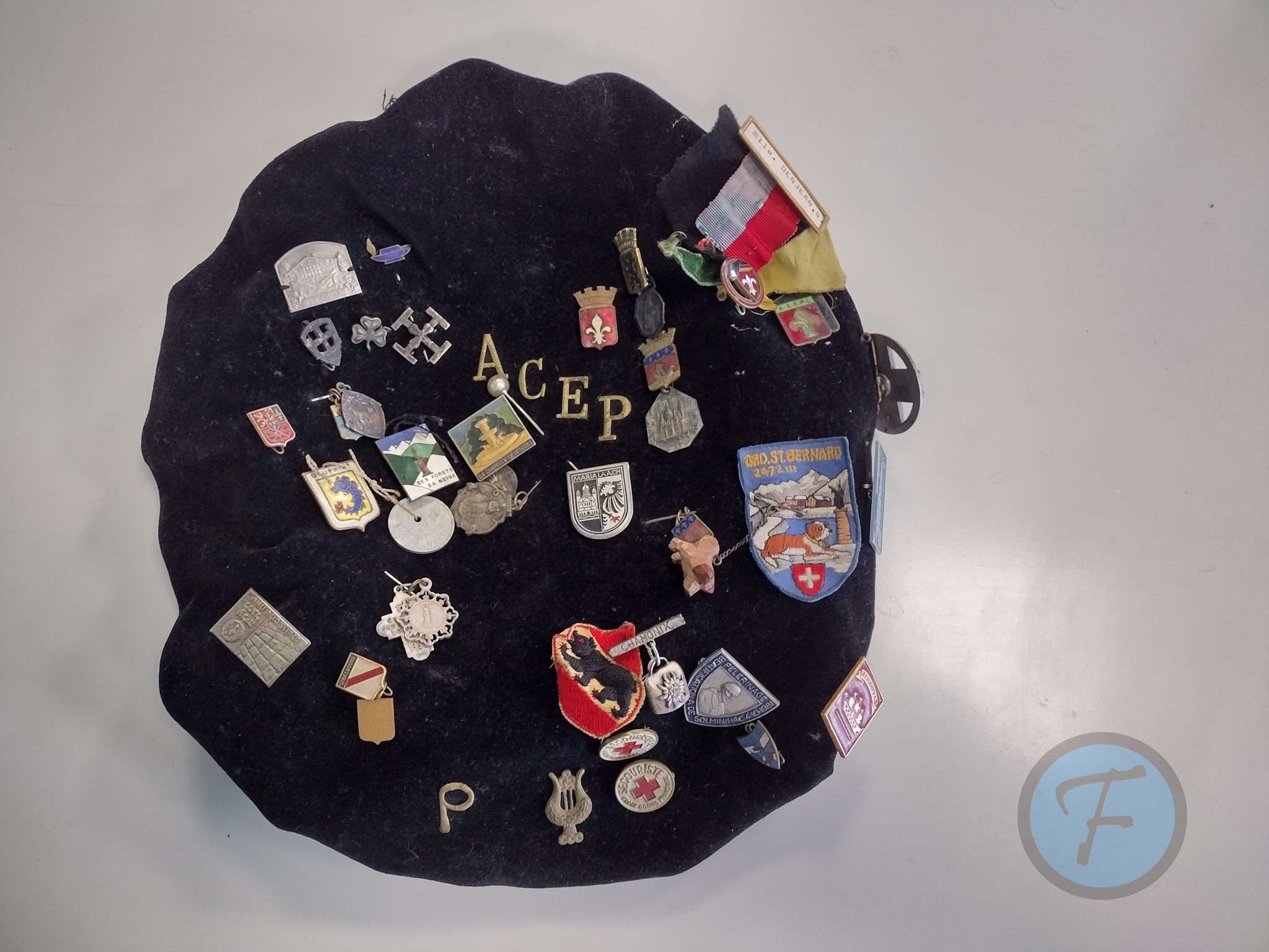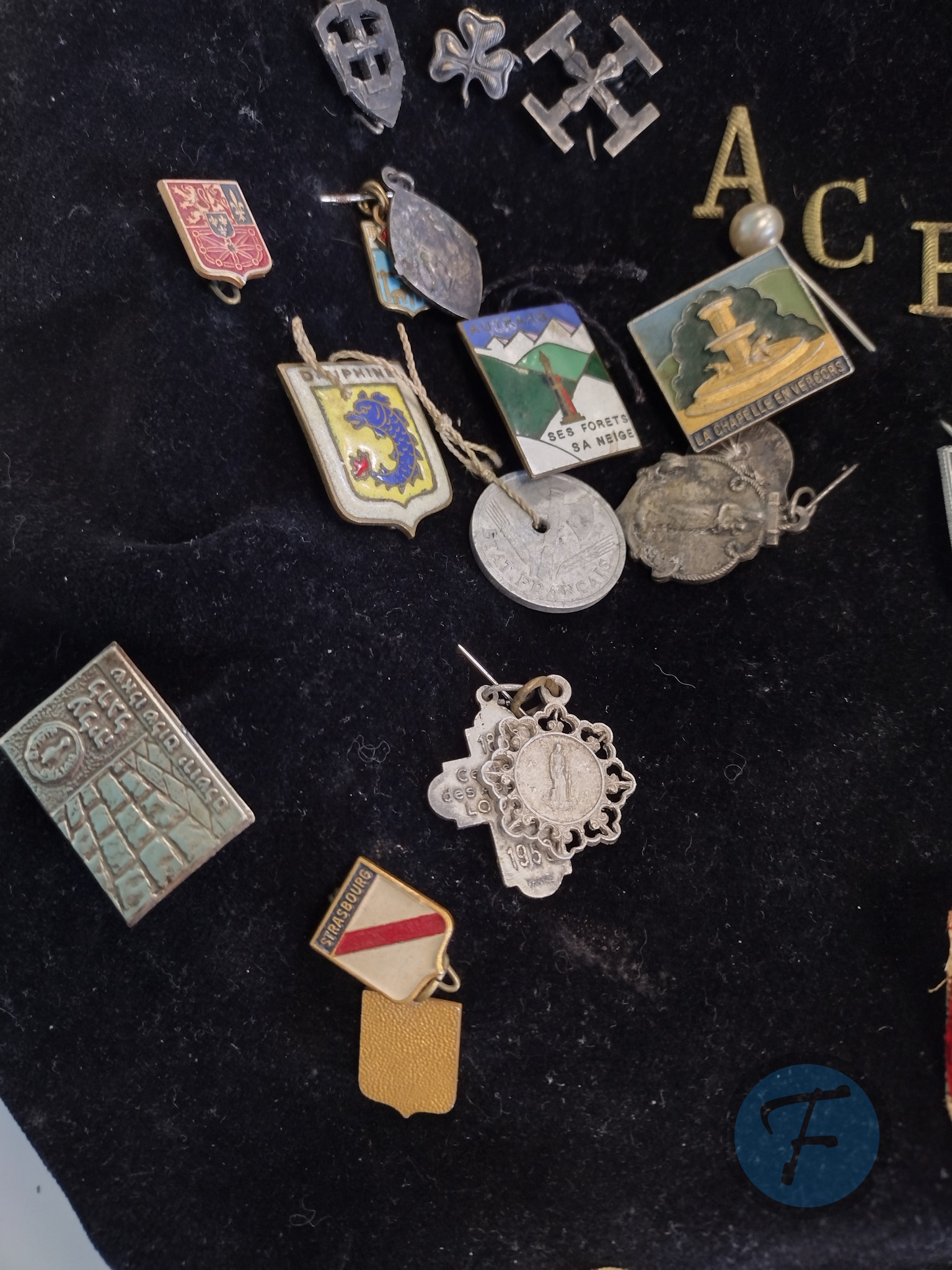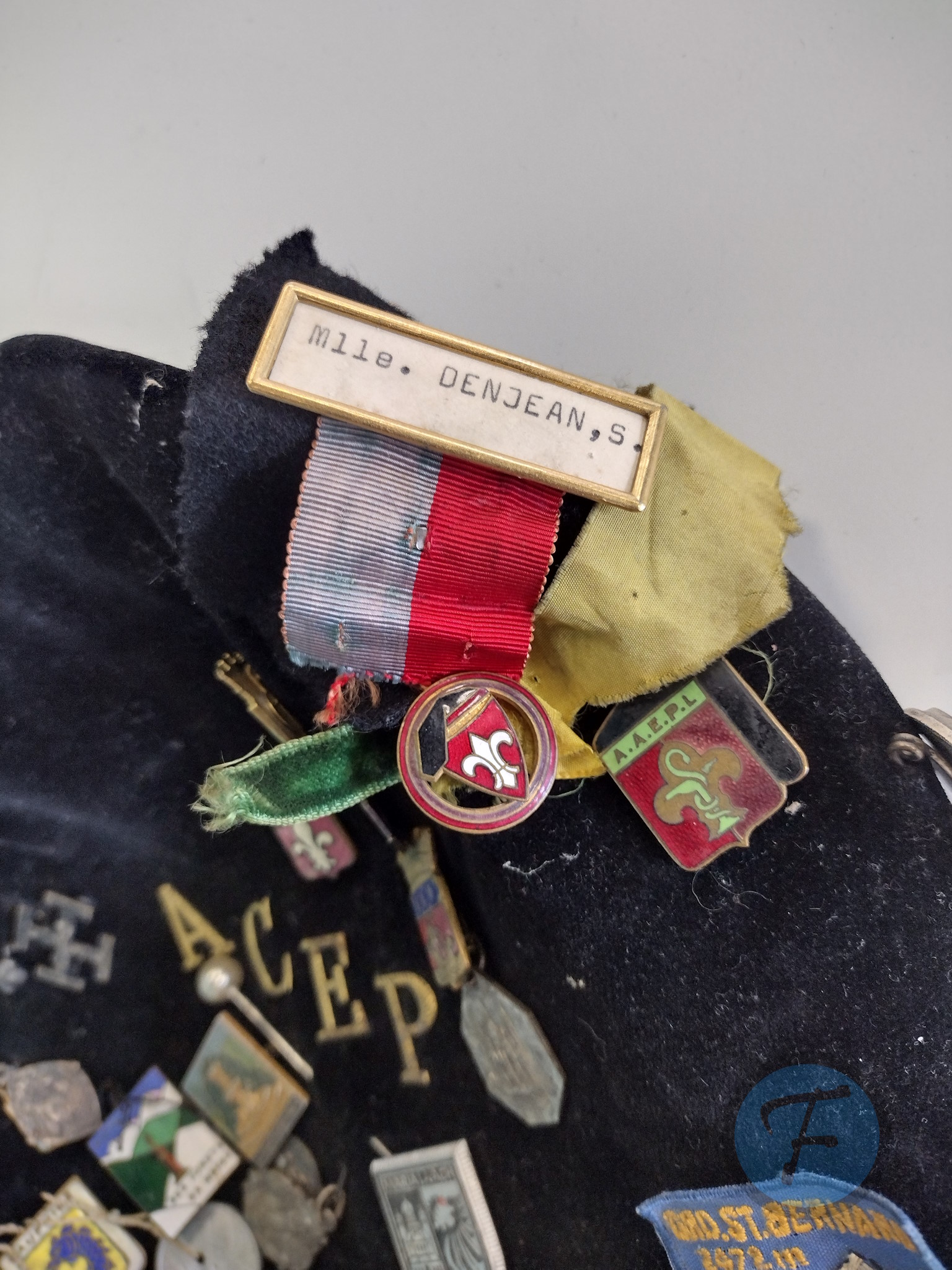- Et un insigne de la Fédération Française des Etudiants Catholiques (F.F.E.C.).