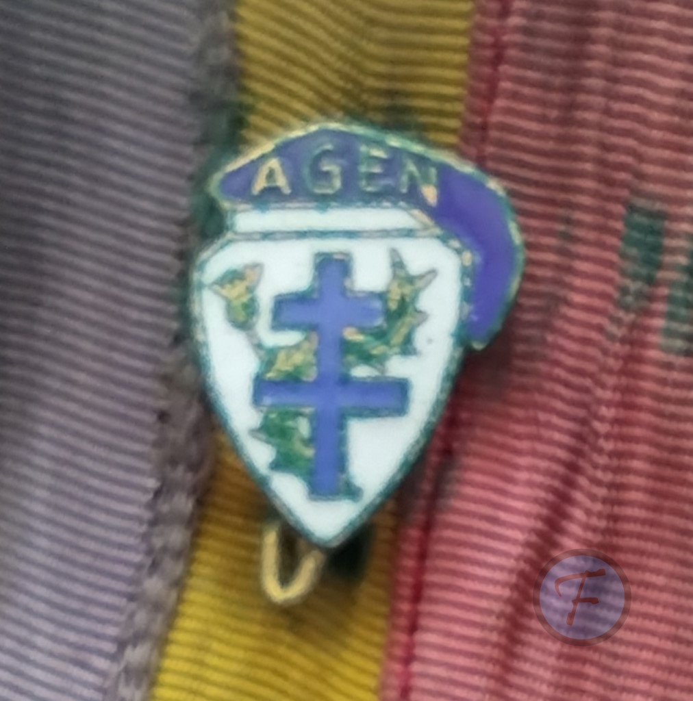 Cet insigne présente un blason d'argent orné d'un blason d'or et d'une croix de Lorraine pourpre, surmonté d'une faluche pourpre ornée des initiales de l'association.