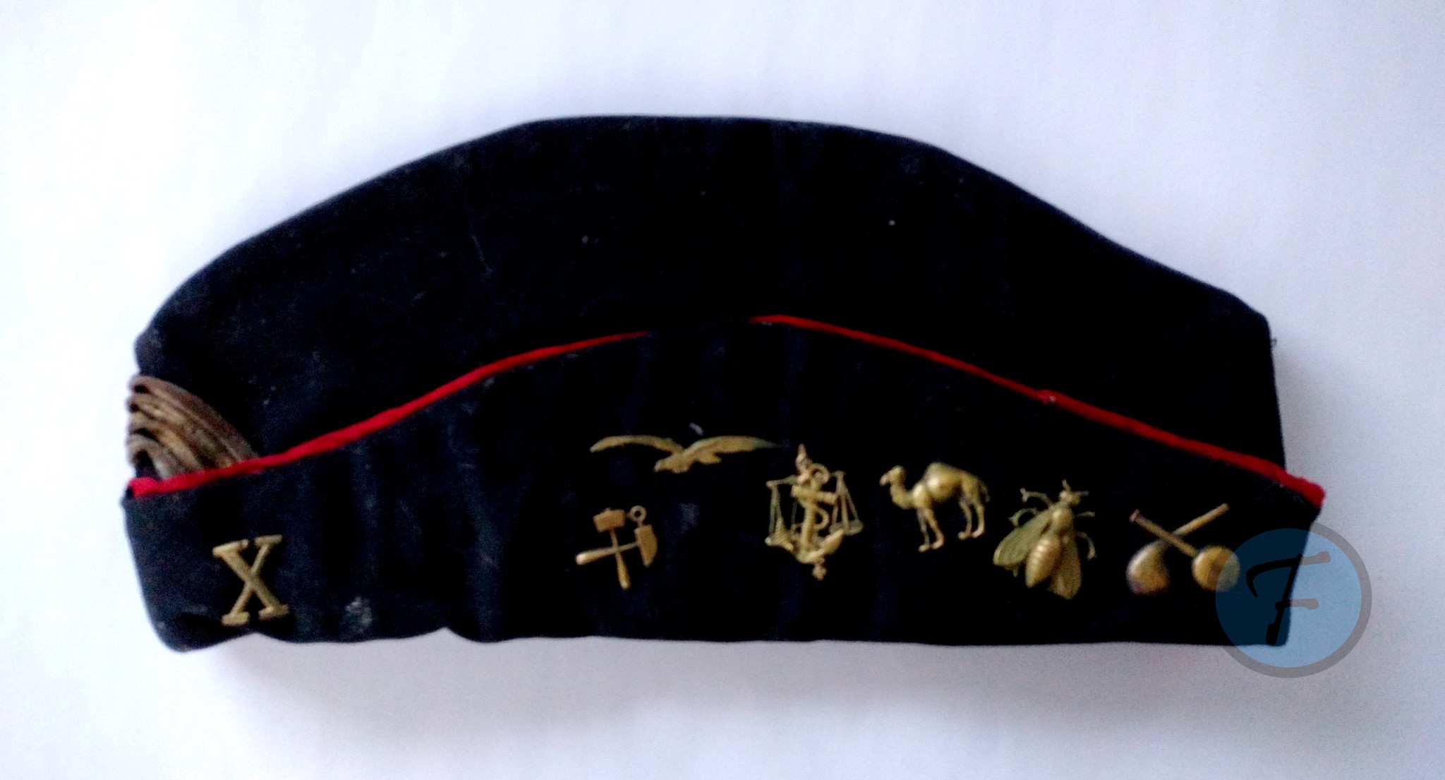 La présece du seul ruban rouge indique habituellement qu'il a abandonné en première année (pas de ruban jaune avant ou après). Toutefois, les 4 doubles gallons en frontal tendent à indiquer qu'il est resté 4 ans dans la prépa. Le nombre important d'insignes à sénestre confirment cette hypothèse car tous ces insignes représentent une école de laquelle il aurait préparé le concours :