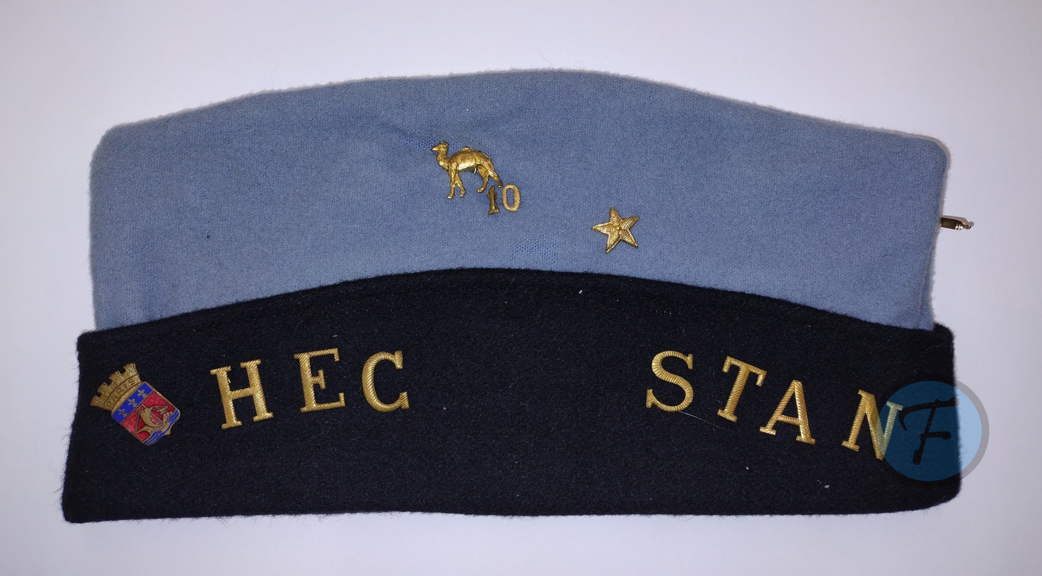 A dextre, sur la partie haute, un chameau indice 10, et une étoile dorée ; sur la partie basse, un insigne-blason de Paris, HEC, STAN.