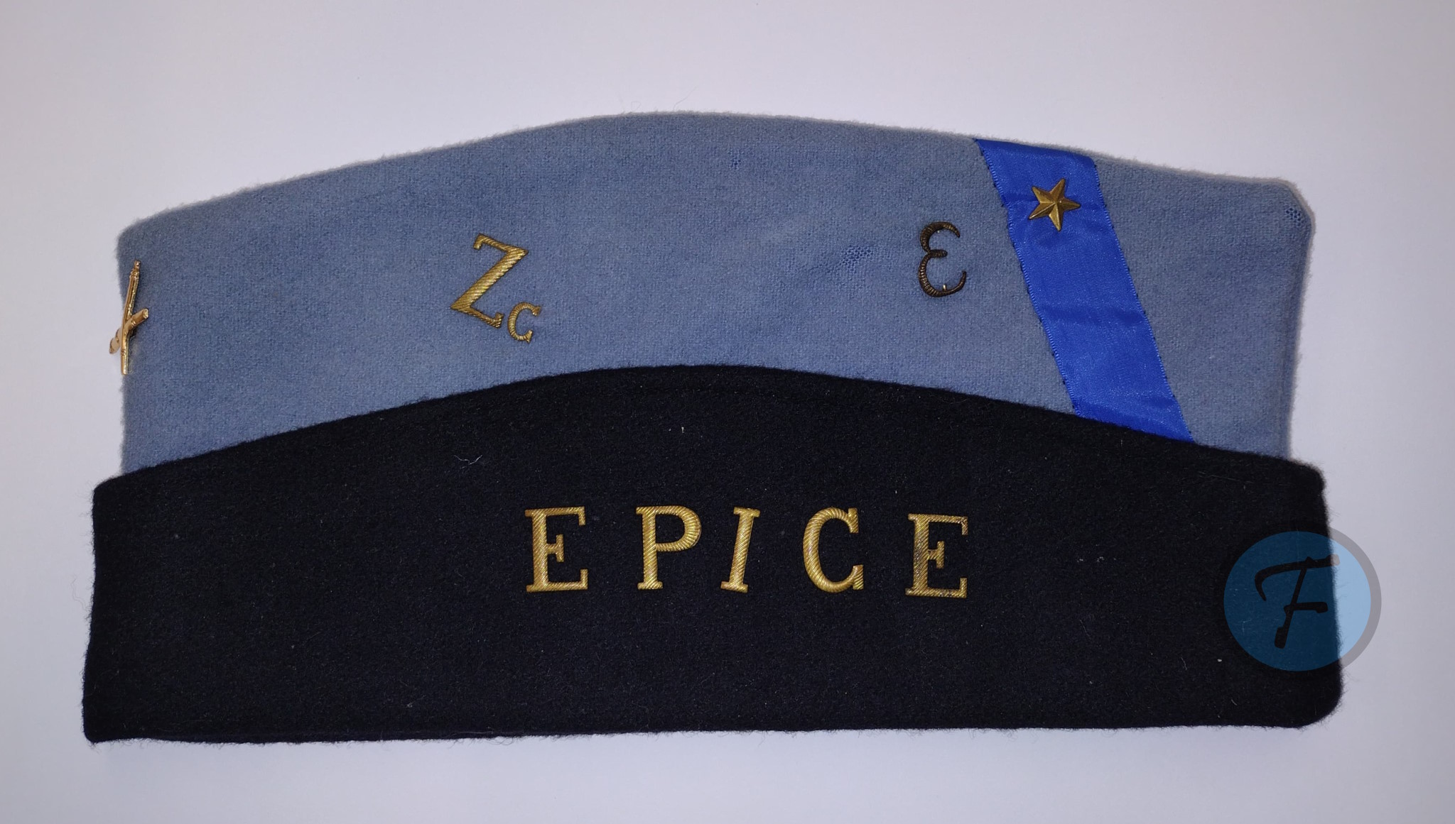 A sénestre, partie haute, Zc, Epsilon, Etoile dorée sur ruban satin bleu ; partie basse : EPICE.