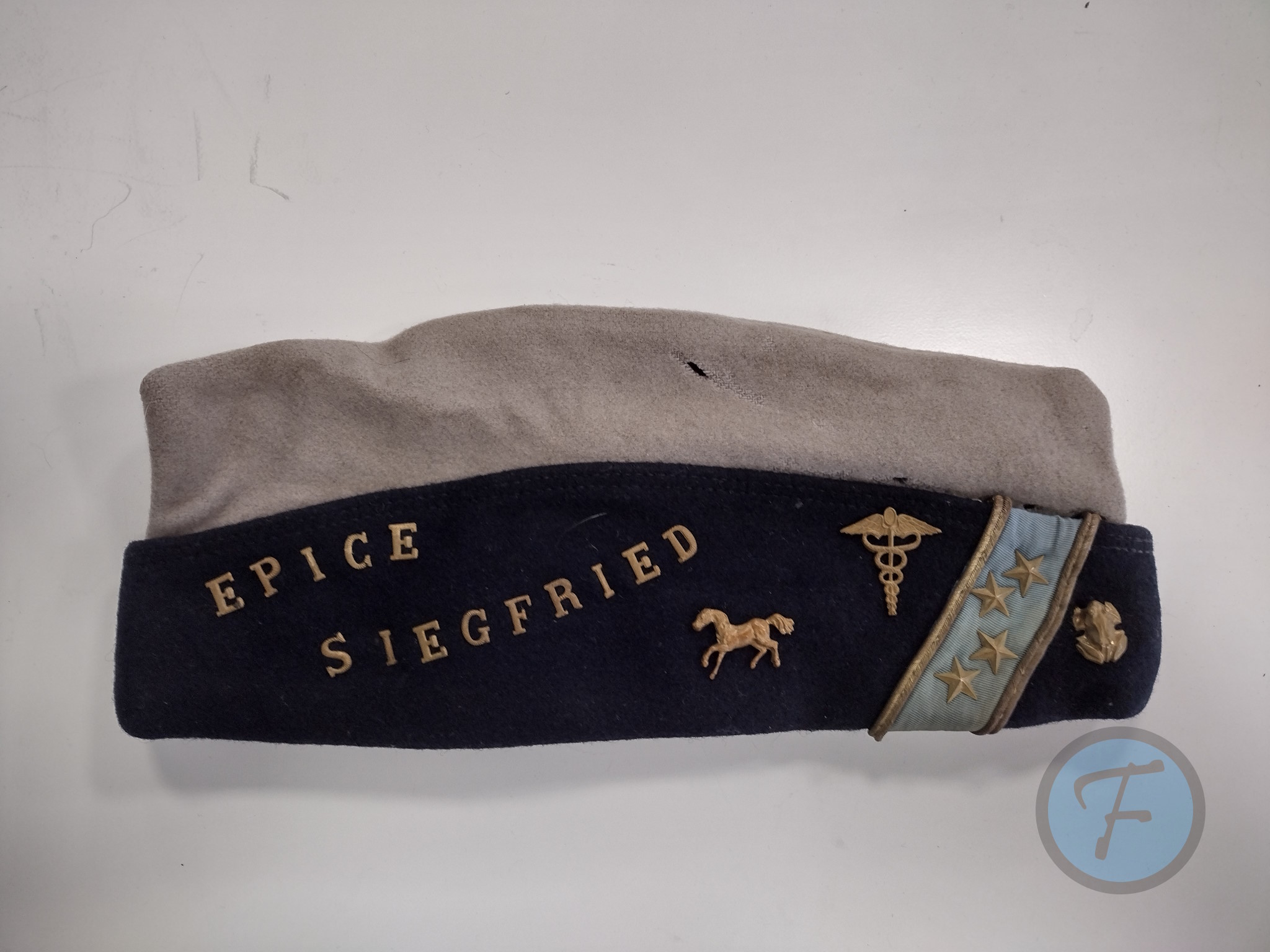 Dans le replis du calot, on peut lire , écrit au feutre rouge : "refusé à l'école des cadres" avec une tête de mort sur fémurs dessinée.