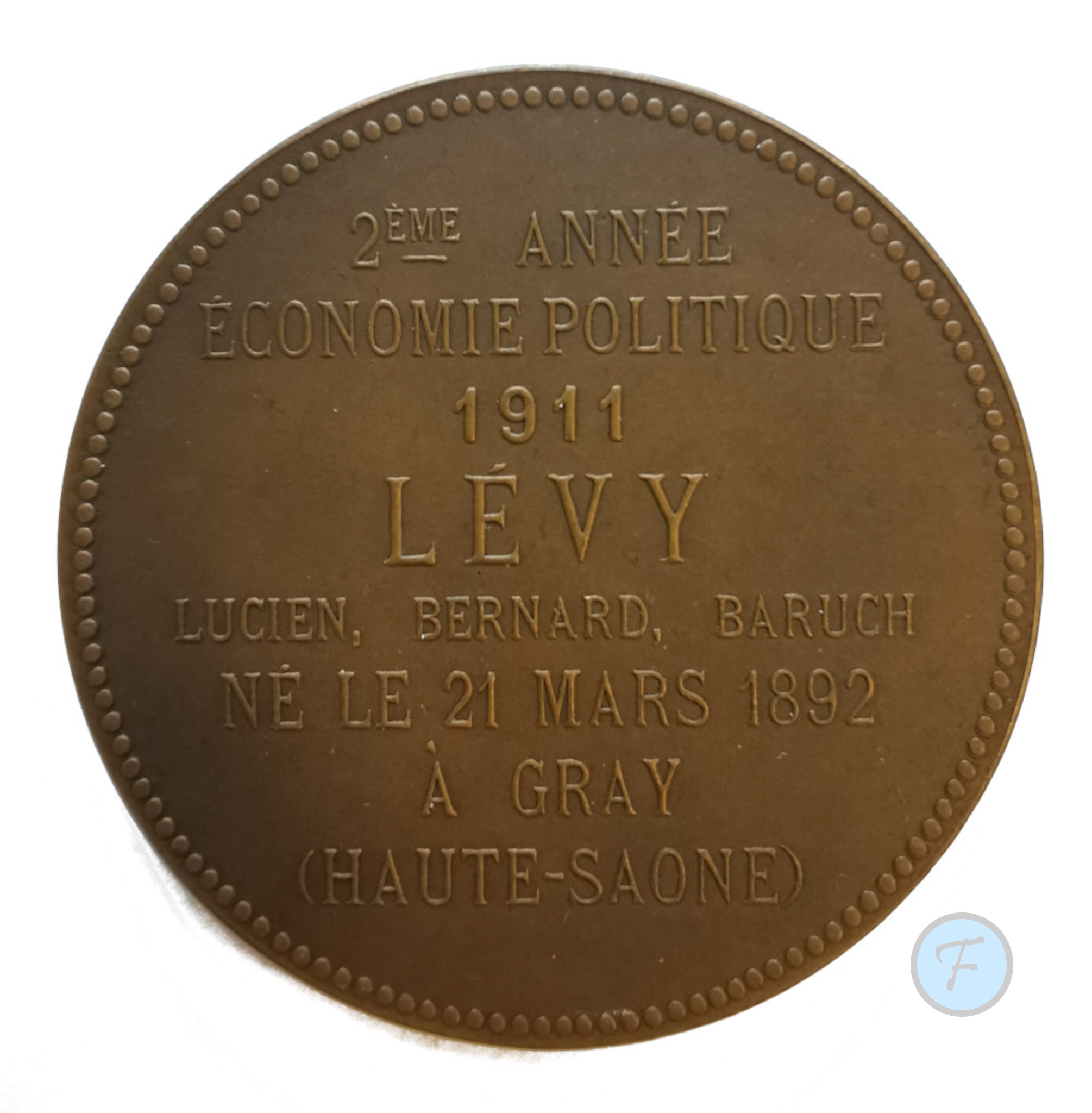 Du côté pile, "2eme année économie politique, 1911, Lévy Lucien, Bernard, Baruch Né le 21 Mars 1892 à Gray (Haute-Saône)".